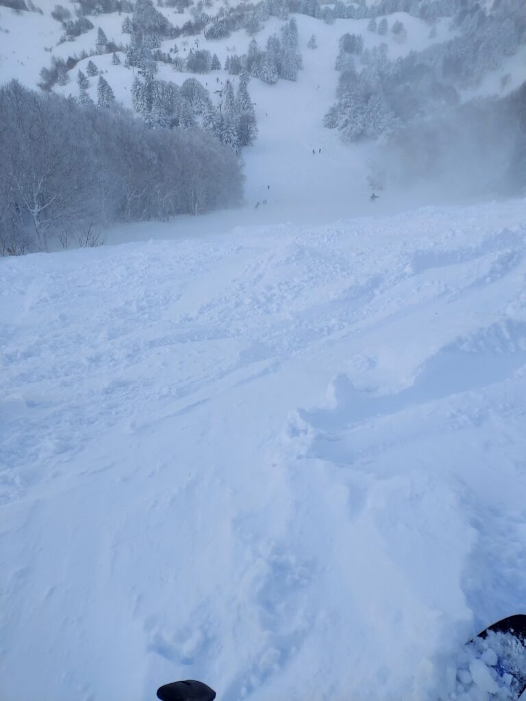 今まで雪がついてなくて滑れなかった最大38度の非圧雪急斜面ルッキーチロルコースを初めて滑ることが出来て最高でした。